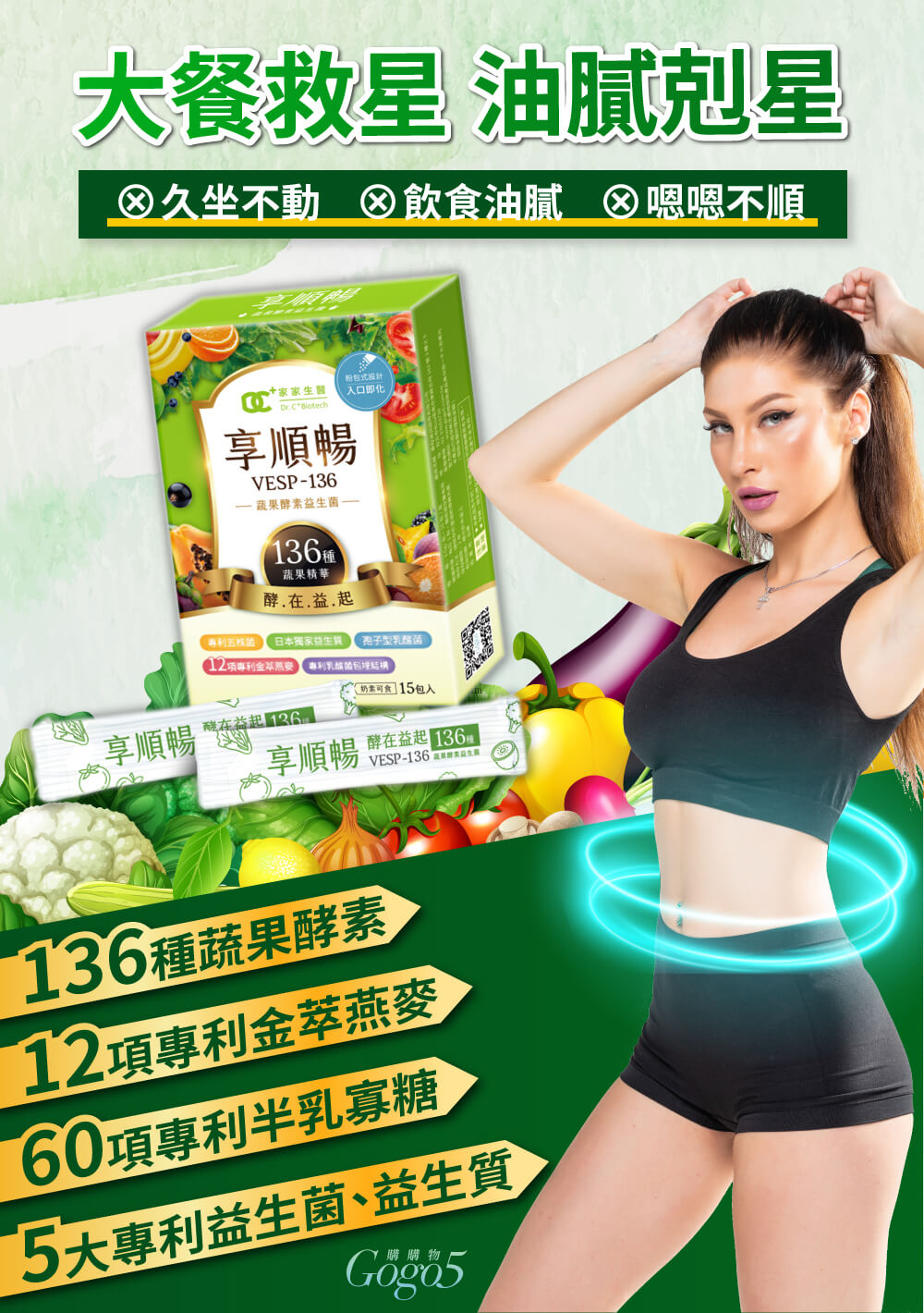 家家生醫 - 享順暢 - VESP-136 蔬果酵素益生菌(15包/盒)|天然排毒 × 輕鬆通便 × 宿便掰掰!#纖體 #減肥 #便秘 #保健品 #消脂瘦身 #營養補充劑
